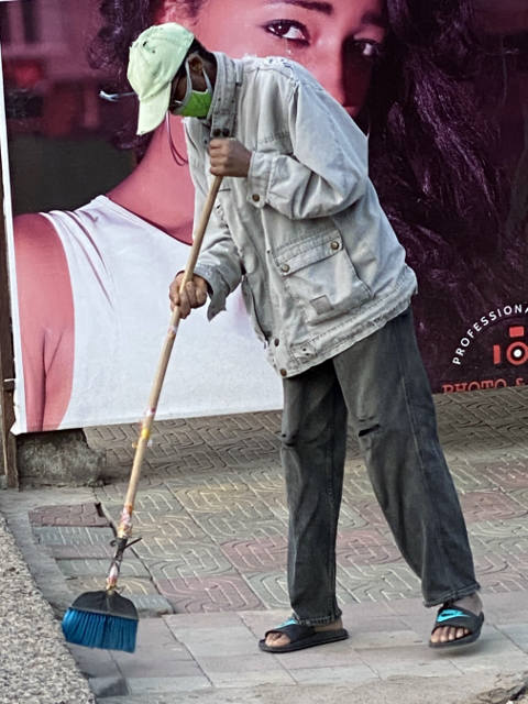 Mit blauem Besen
